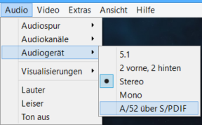 Ich nutze immernoch VLC in der Verson 2.0.8, weil das die letzte Version ist, die mir unter Audiogeräten die folgende Option bietet (A/52 über S/PDIF):