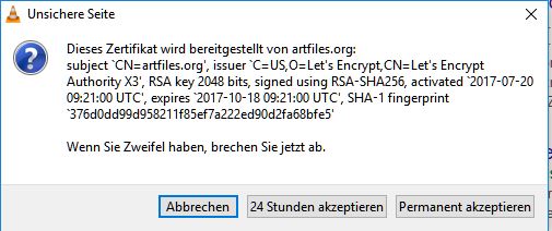 und Finger weg von vlc.de denn das ist eine gefakte Seite die sehr echt aussieht und gut gemacht ist, aber bei der im Installer Adware mit eingebunden ist.