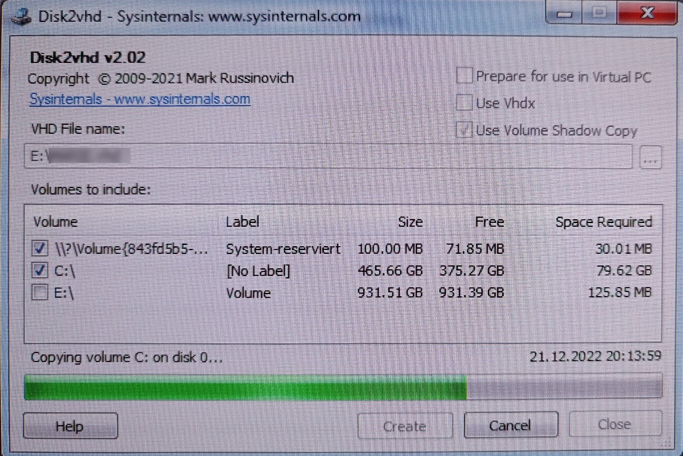 Ich hatte eine Idee gehabt, die Hardware zu erneuern, aber statt ohnehin veraltete Hardware Stück für Stück zu ersetzen, habe ich ein neuer Arbeit-PC mit neuerer Hardware und Windows 11 (64 Bit) gekauft. Von altem System/Festplatte wurde ein VHD-Abbild OLD.vhd mit "Disk2vhd" erstellt. In neuem PC wurde das VHD-Image des alten PCs via VirtualBox eingebunden und gestartet. VirtualBox's Guest Additions in dem Gast PC wurde installiert (jedoch, ohne dass die Anwendung irgendwie startet/im Taskleiste angezeigt wird).