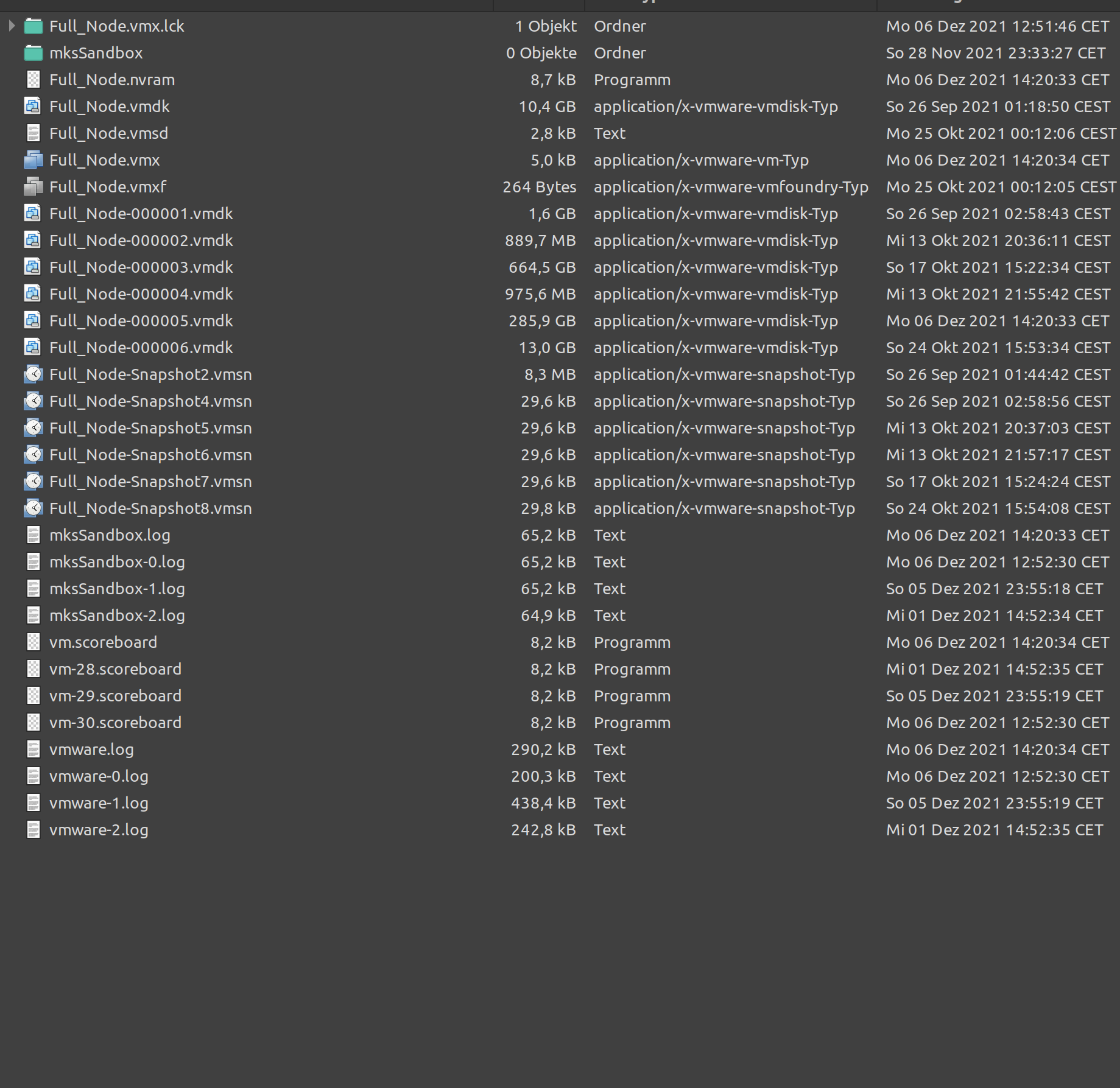 Nicht wundern, die in etwa 17 GB große Snapshot Datei fehlt,