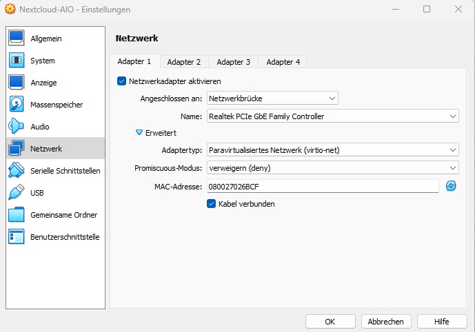 ich bin gerade etwas am probieren. Ich habe die Nextcloud AiO Lösung in einer VMBox ( Virtual VM Virtual Box ) am laufen.