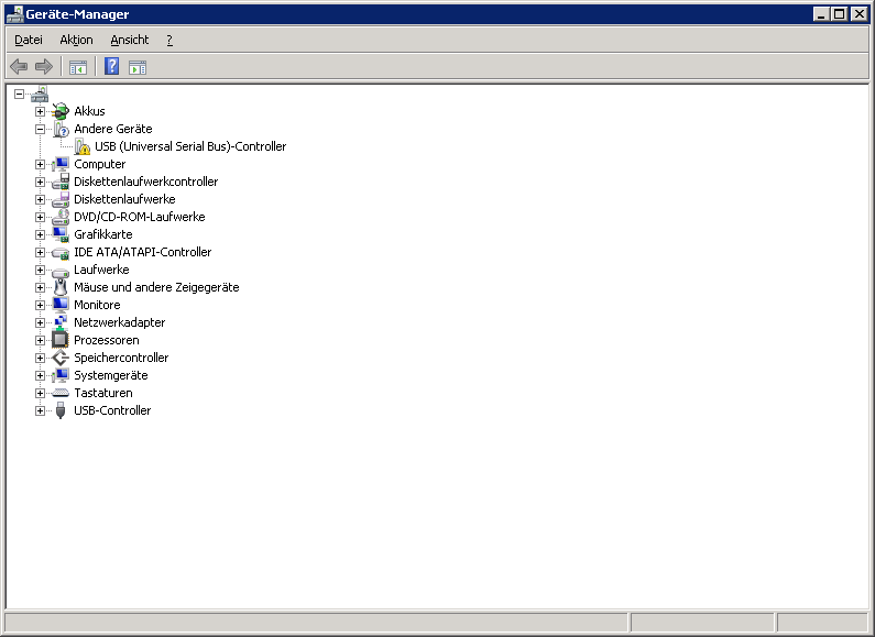Ich habe der VM den USB Controller hinzugefügt jedoch wird dieser im Gerätemanager vom WS2008 nicht erkannt.