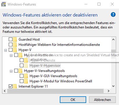 Habe nachgeschaut. Im Bios wird gemeldete, dass diese Funktion eingeschaltet ist. Interessanterweise gibt es keine Moeglichkeit, das ab zu schalten. Bios ist die neueste erhaeltiche Version (1.30) installiert. Habe Windows 10 in der aller aktuellsten Insider (SkipAhead)-Version installiert. Auch die Hyper-V-Geschichten unter "Windwos-Features aktivieren" ist installiert. Speccy sagt unter Motherboard-Eigenschaften auch das Virtualization "supportet/enabled" ist. Auch habe ich in den "Virtual Machine Settings" unter Procesors die Option "Virtualize Intel VT -x/EPT or AMD-V/RVI" eingeschaltet.