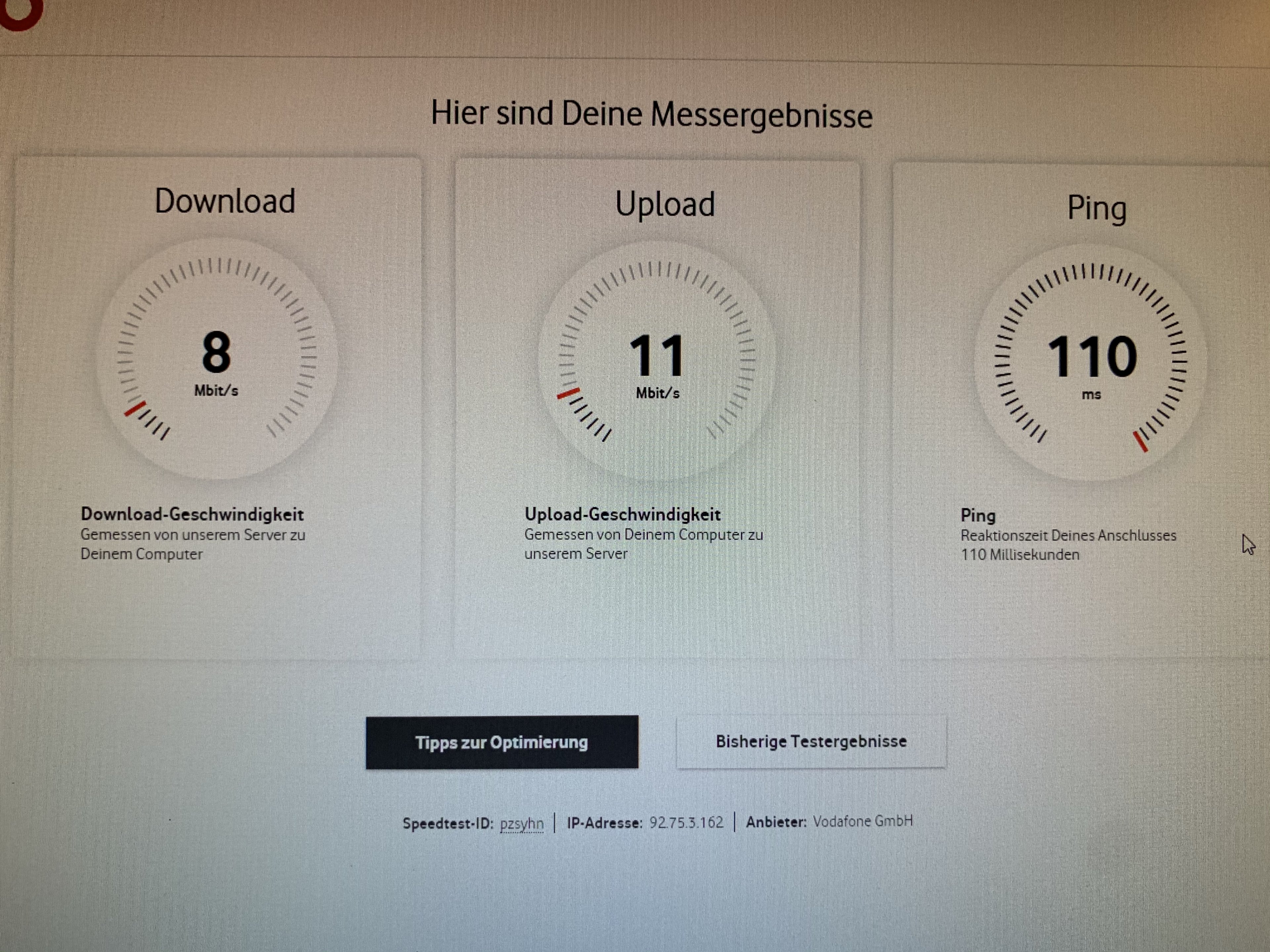 Dann hat er noch einen HD-Film gestreamt und einen Speedcheck gemacht und gesagt das läge an Corona weil mehr Leute jetzt Homeoffice betreiben - ernsthaft? In der Nacht?
