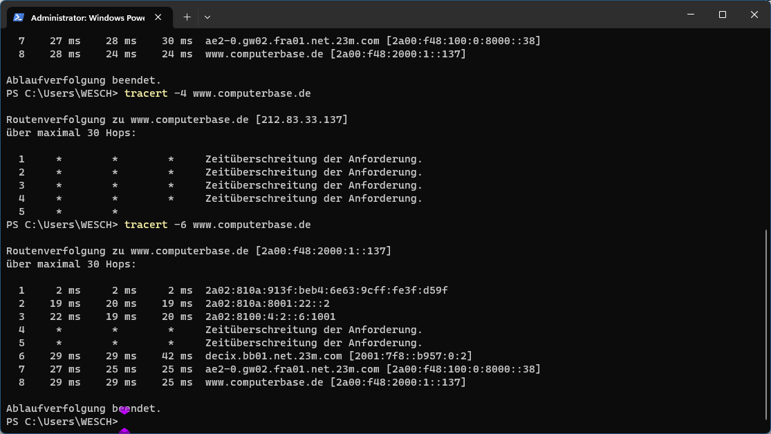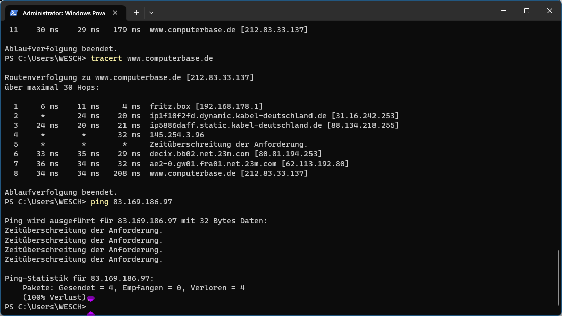 Von de Ausgaben deiner Befehle habe ich natürlich keine Ahnung.