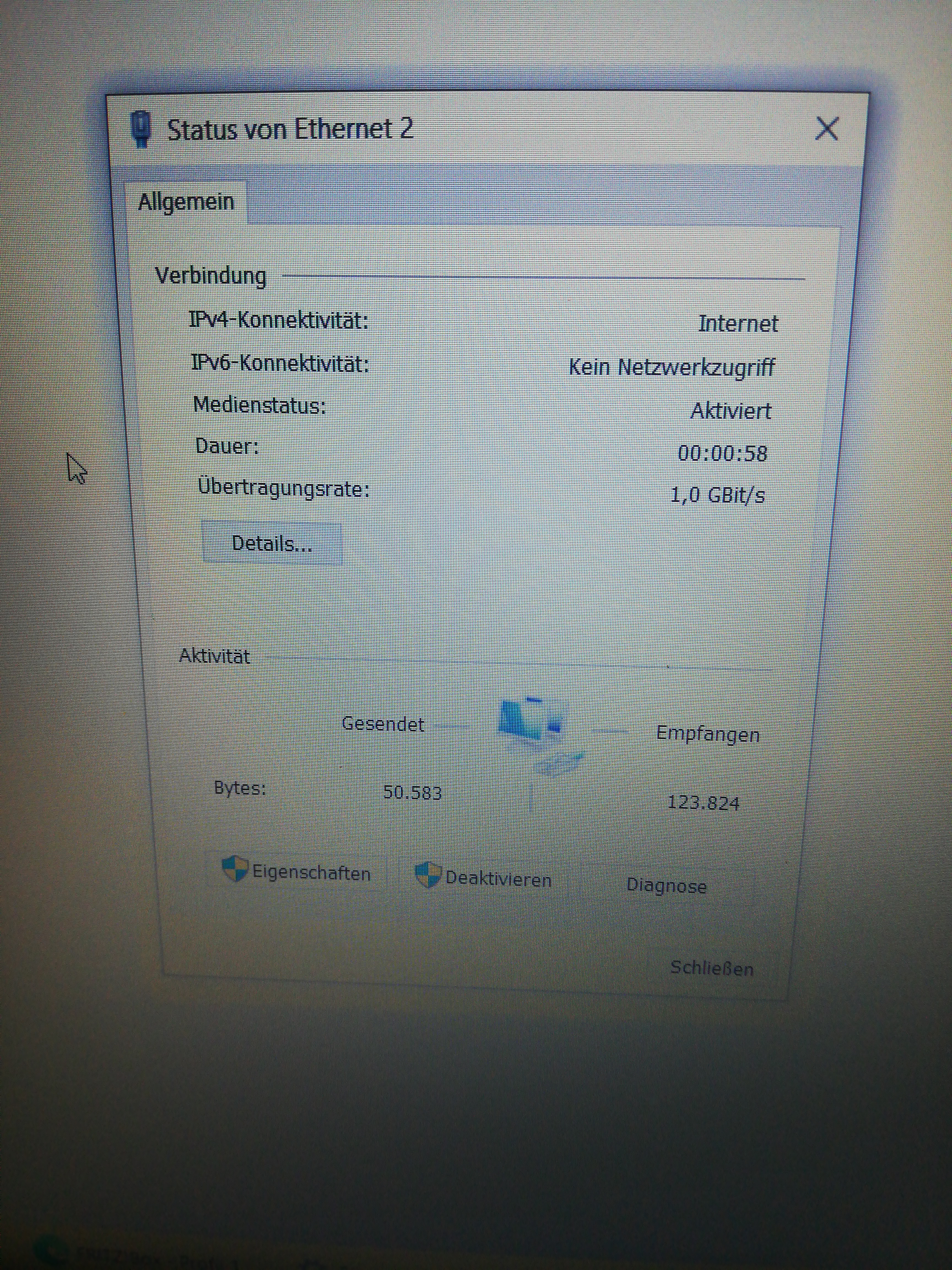 Ich habe verschiedene Endgeräte ausprobiert sowie mehrere LAN Kabel aber überall habe ich dasselbe Problem. Das WLAN funktioniert dagegen.
