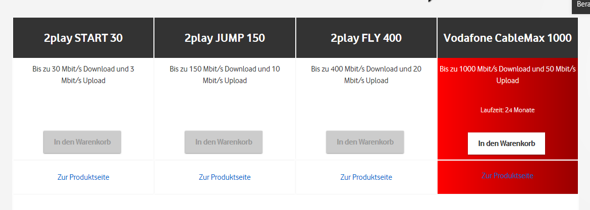 Oh.... moment mal. Kein 500mbit. Hmmmm.... Und man kann 1000 in den Warenkorb legen? Hmmm... Und wie du siehst ist das 1000 Angebot billiger als das 400. Von CableMax 500 steht nirgens was auf der Seite wenn man nicht Kunde ist/eingeloggt.