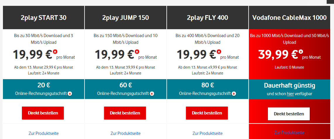 Oh.... moment mal. Kein 500mbit. Hmmmm.... Und man kann 1000 in den Warenkorb legen? Hmmm... Und wie du siehst ist das 1000 Angebot billiger als das 400. Von CableMax 500 steht nirgens was auf der Seite wenn man nicht Kunde ist/eingeloggt.