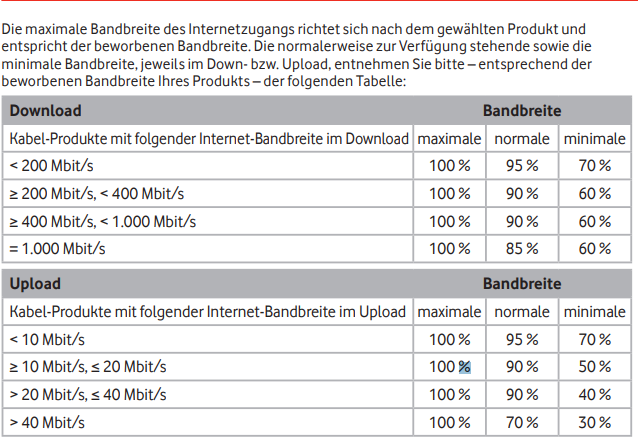 Vodafone selbst schreibt in seinem Datenblatt zum 1.000er Tarif, dass die Datenrate um bis zu 40% abweichen kann (also garantiert quasi 60% der verkauften Leistungskapazität).