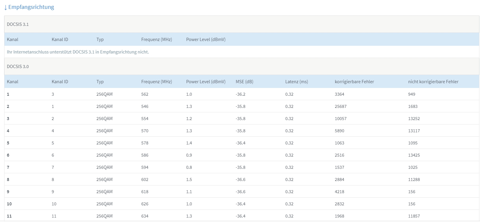Dann schau mal bitte was unter CMTS Vendor und "connection" "plannedImprovement" angegeben wird.
