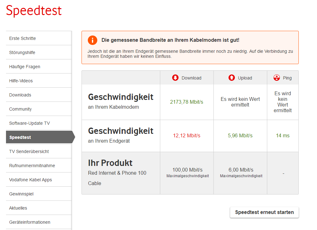Habe heute auf der Vodafone Seite mal Speedtests gemacht und das Ergebnis war nicht gut (siehe Bild).