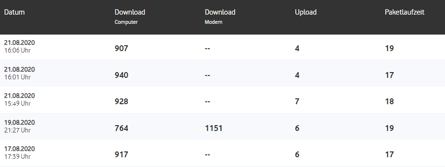 Seit ca. dem 17.08 haben sich meine Uploadwerte dauerhaft verschlechtert, schwanken nun zwischen 1 und 6 Mbit statt der