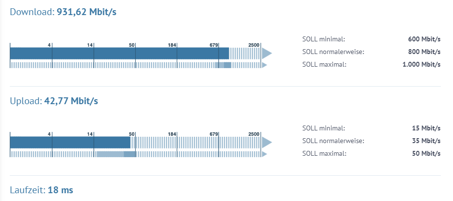 Was mir aber Sorgen bereitet ist, dass wenn ich über http://speedtest.belwue.net/http-dl.html (vom Techniker empfohlen, sieht für mich als Laien unabhängig von Vodafone aus) oder https://speed.hetzner.de/ (von Vodafone Moderatorin im Forum empfohlen) die Downloadgeschwindkeit teste, erreiche ich stabile Werte von über 900Mbit.