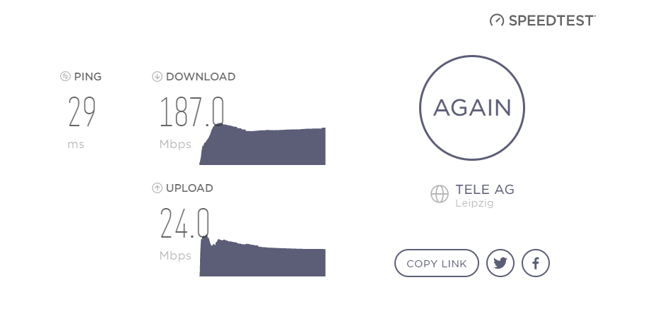 Teste ich den Anschluss über den Vodafone eigenen Speedtest https://speedtest.vodafone.de/#speedtest_init oder speedtest.net komme ich immer auf super Werte um die 950Mbit. Es ist egal zu welcher Tageszeit o.ä., die Werte sind immer nahezu identisch.