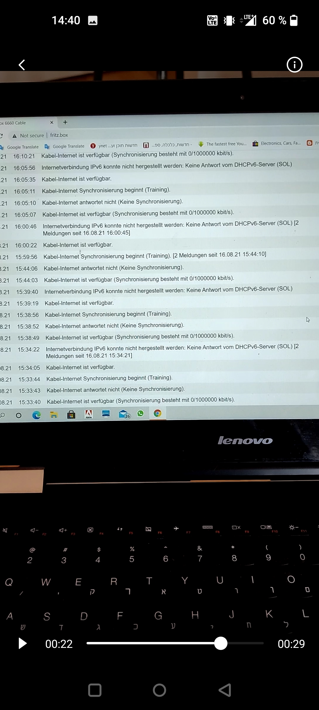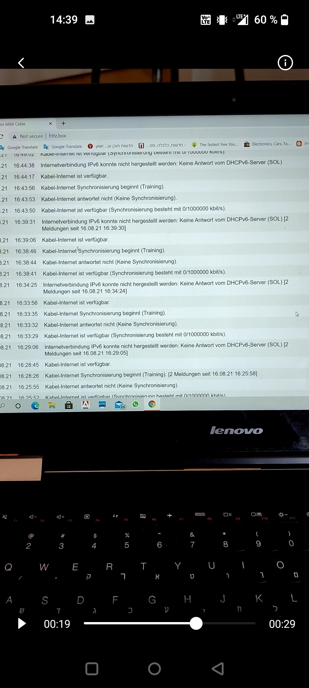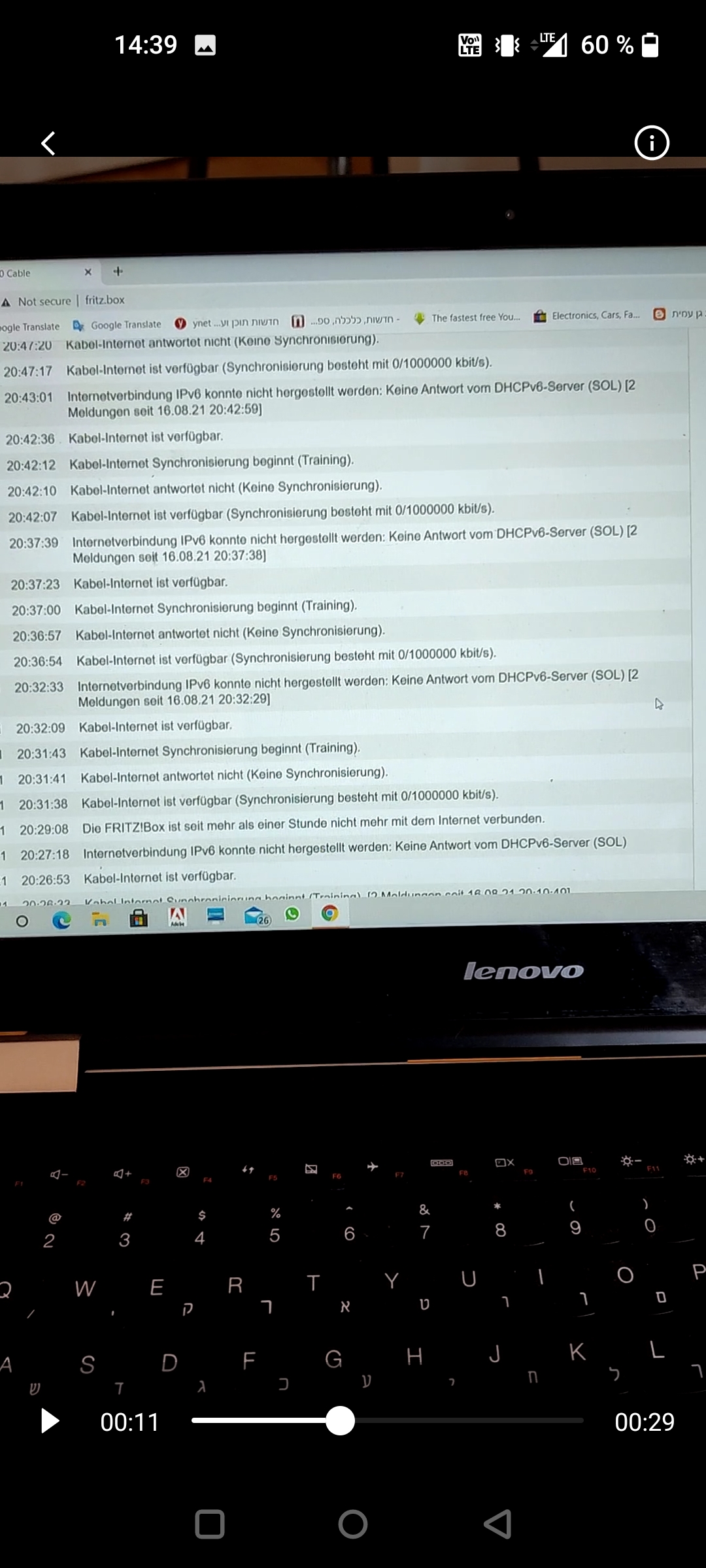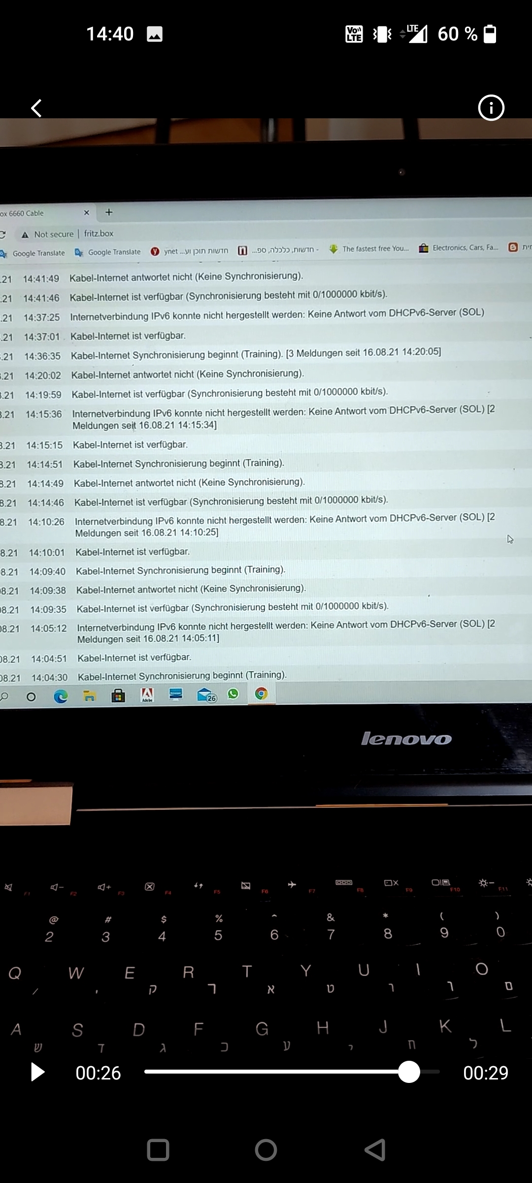 Und...hier bin ich wieder. Es gibt wieder/immernoch Probleme. Die Info LED war rot und Power/Cable blinkt. Restart, Werkeinstellung, alles probiert. Es gibt diverse Fehlermeldungen. Vodafone sagt, dass das Haus betroffen ist und man arbeitet dran. Was ich mich frage: wenn es eine Störung am Anschluss gibt, wieso bricht die WLAN Verbindung ständig ab. Habe nen Testdurchlauf gemacht mit der Fritzbox App und das WLAN ist ständig am abbrechen. Hänge mal ein paar Bilder ran, vielleicht könnt ihr das Problem diagnostizieren. Was man schonmal sagen kann: es gibt massive Probleme mit der Radar Thematik, aber das ist ja unabhängig vom Anschluss.