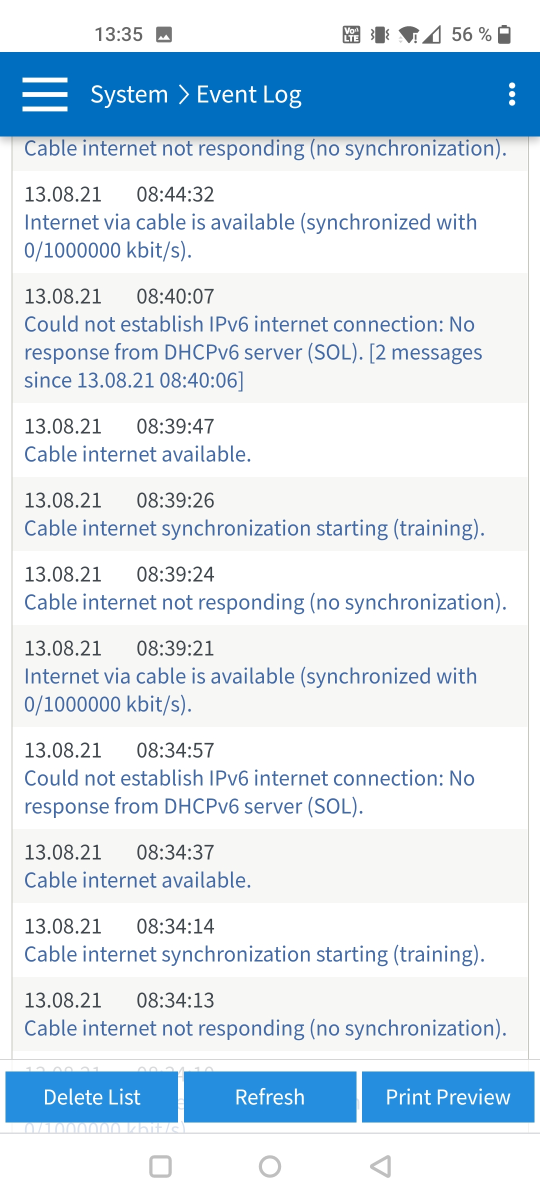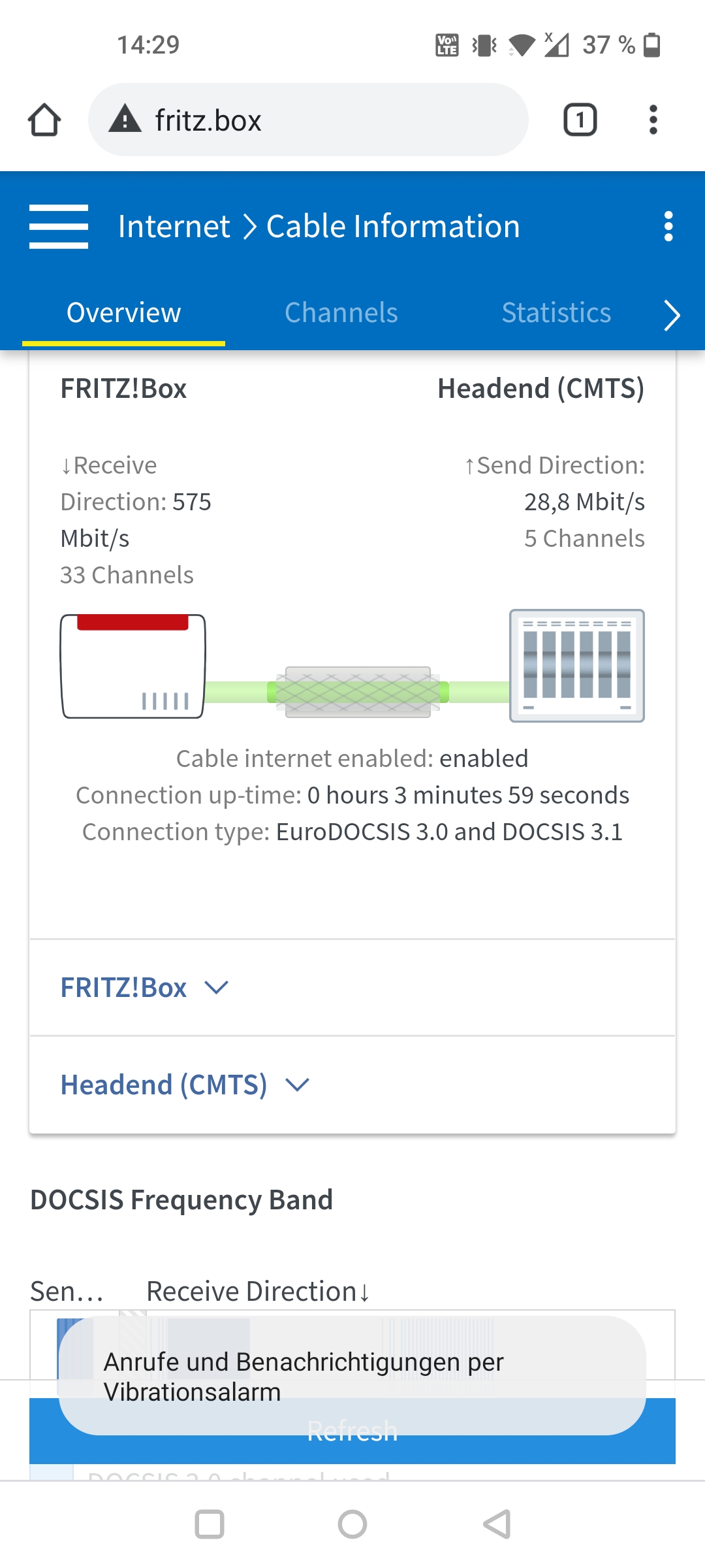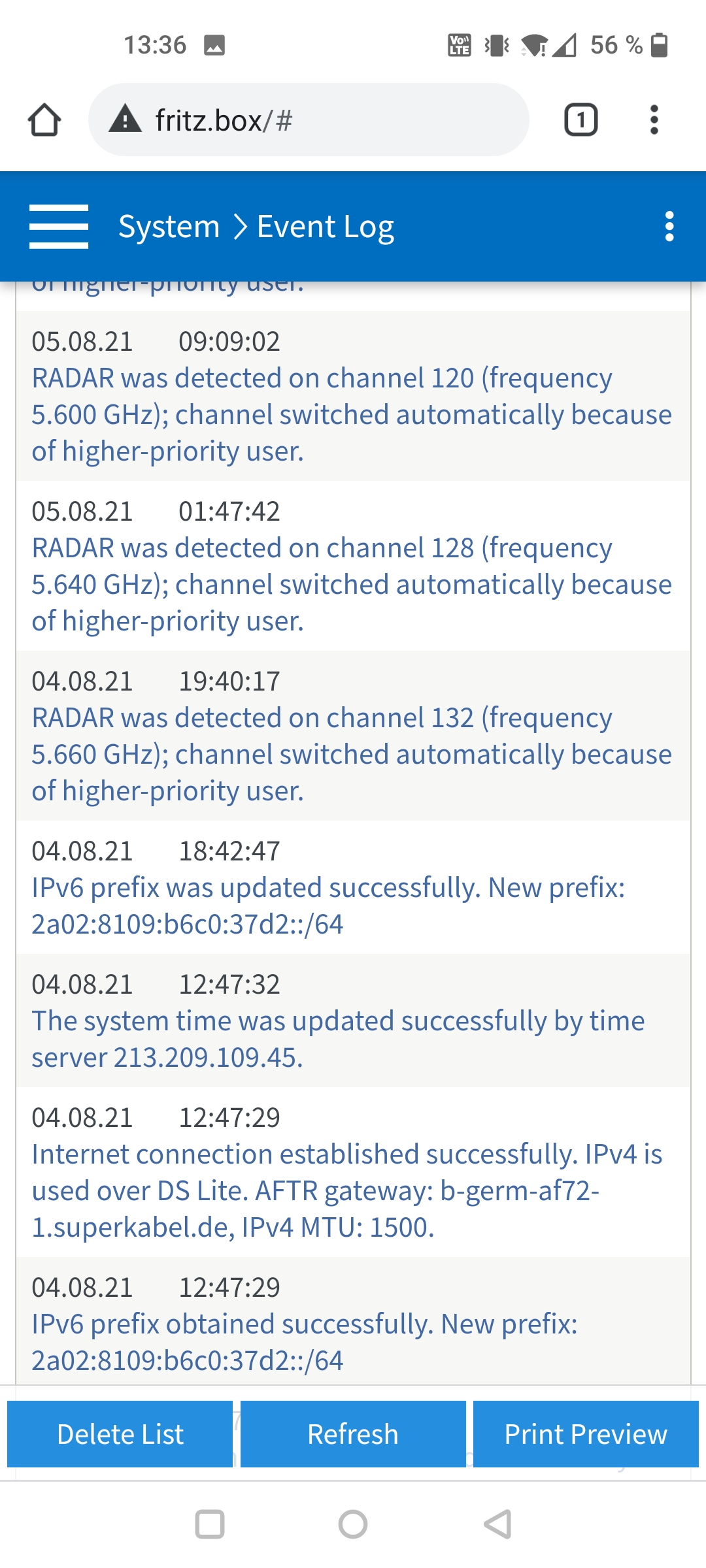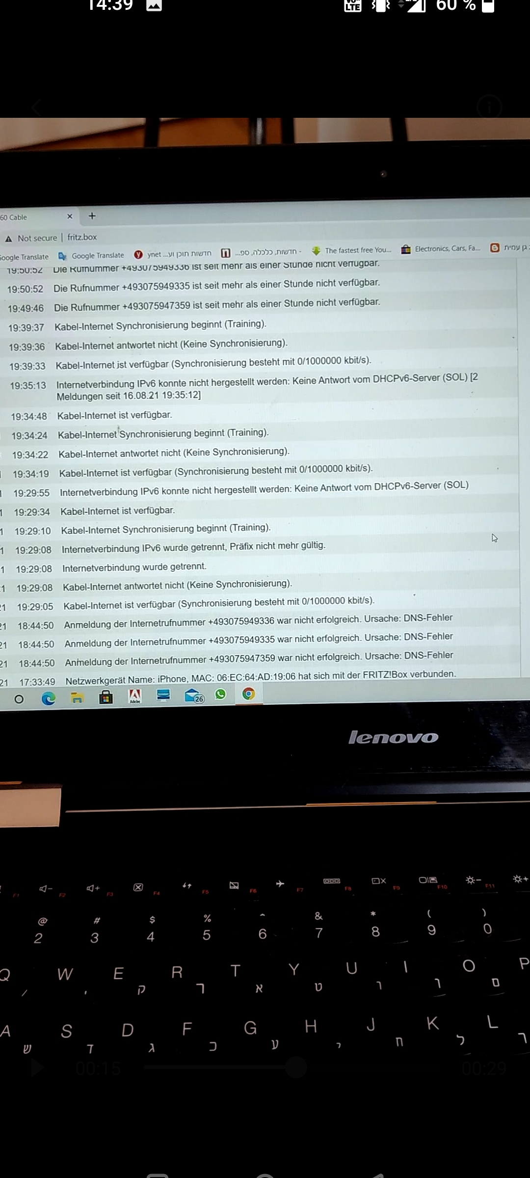 Und...hier bin ich wieder. Es gibt wieder/immernoch Probleme. Die Info LED war rot und Power/Cable blinkt. Restart, Werkeinstellung, alles probiert. Es gibt diverse Fehlermeldungen. Vodafone sagt, dass das Haus betroffen ist und man arbeitet dran. Was ich mich frage: wenn es eine Störung am Anschluss gibt, wieso bricht die WLAN Verbindung ständig ab. Habe nen Testdurchlauf gemacht mit der Fritzbox App und das WLAN ist ständig am abbrechen. Hänge mal ein paar Bilder ran, vielleicht könnt ihr das Problem diagnostizieren. Was man schonmal sagen kann: es gibt massive Probleme mit der Radar Thematik, aber das ist ja unabhängig vom Anschluss.