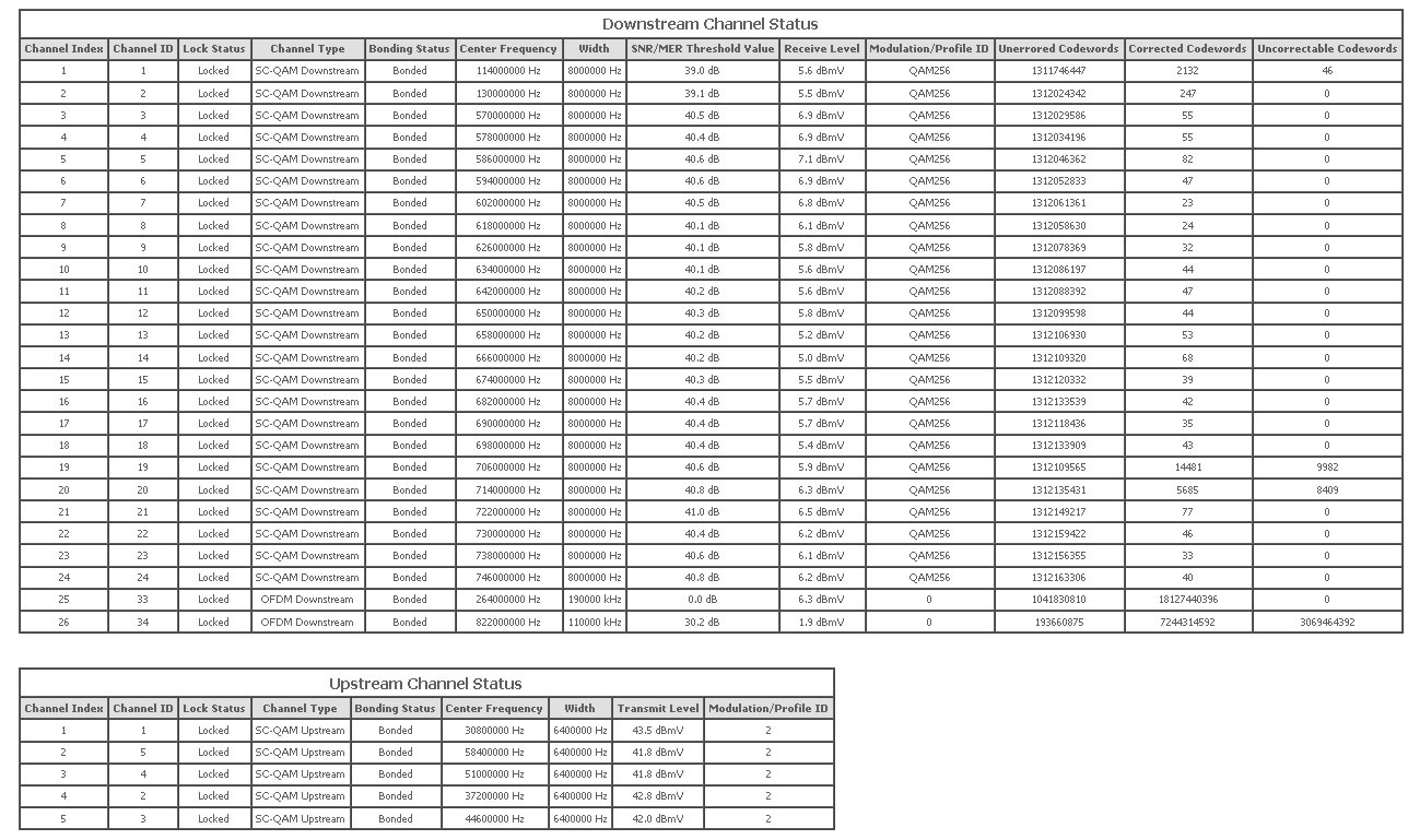 Das Modem spuckt massenhaft MDD timeouts in dieser Zeit und der OFDM hat beinahe 50% unkorrigierbare fehler.
