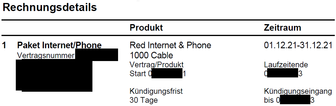 Auch bei Vodafone Kabel steht das Vertragsende auf der Rechnung!