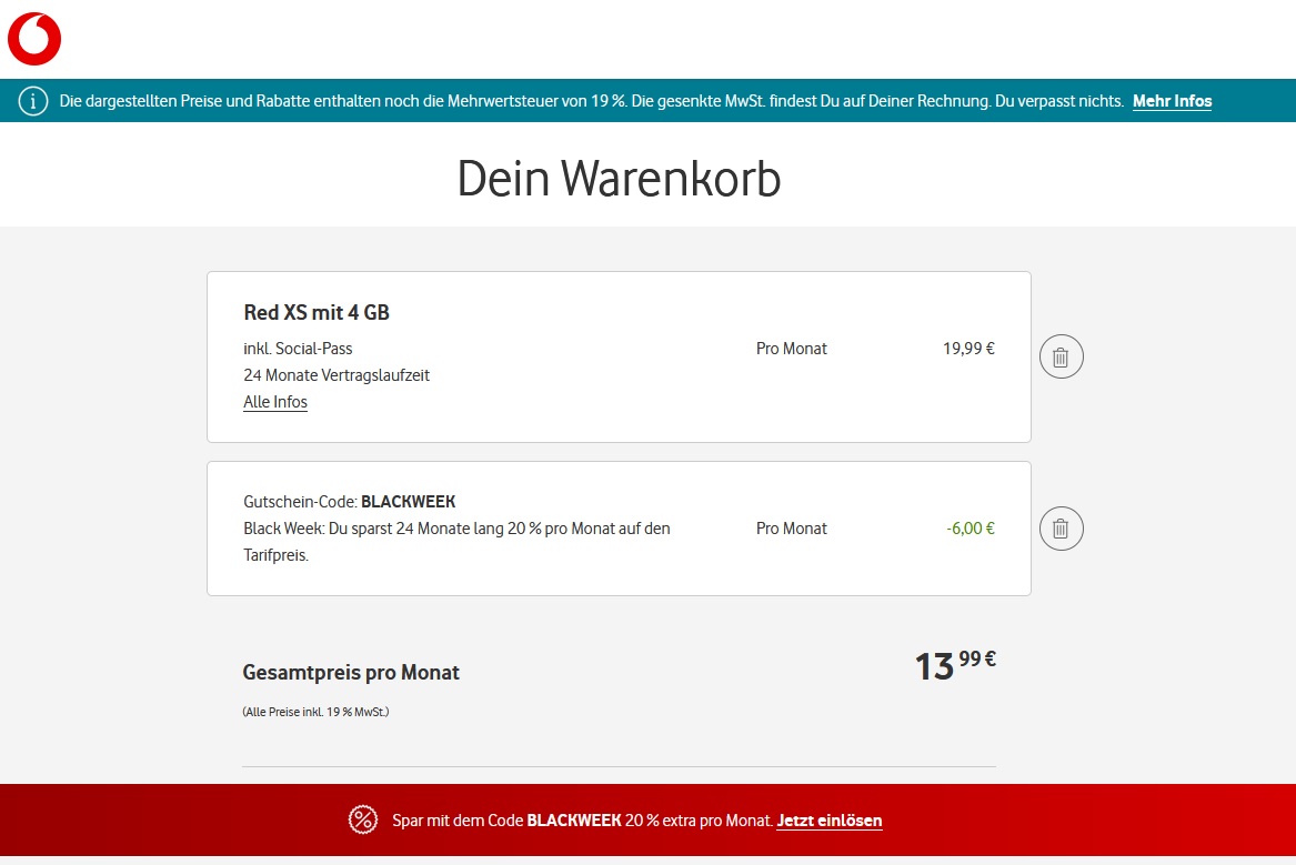 Jeden Monat. Gilt,solange Du einen Mobilfunk-Vertrag und einen Internet & Phone-Vertrag von Vodafone hast. "