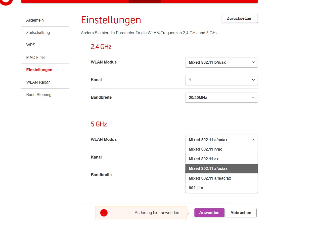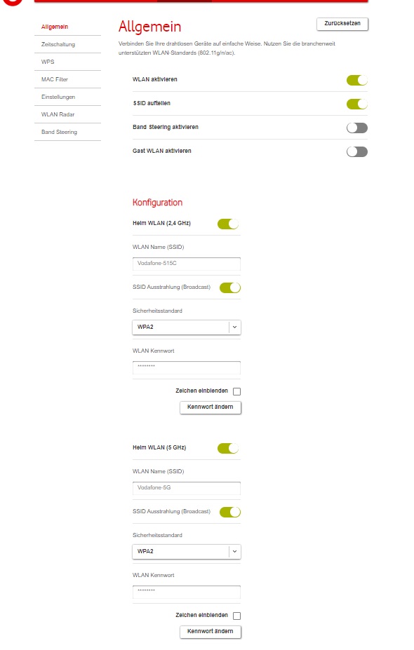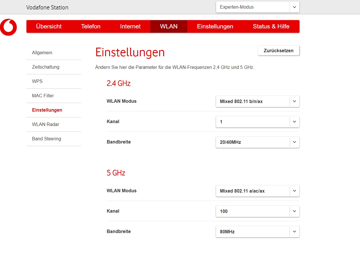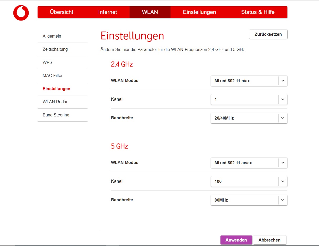 2. Hier oben bin ich mit dem PC über LAN an einem Speed Home WLAN, mit der VFStation6 über WLAN Verbunden(5G+2,4Ghz)