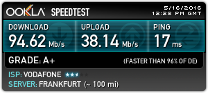 Es ist mittlerweile so, dass ich nur zwischen ~ 01:00 und ~ 08:00 Uhr morgens fast vollen speed ( ca. 98 Mbit/s down und ca. 38 Mbit/s uplstream) und fast guten Ping (zwischen 30 und 45ms) habe.