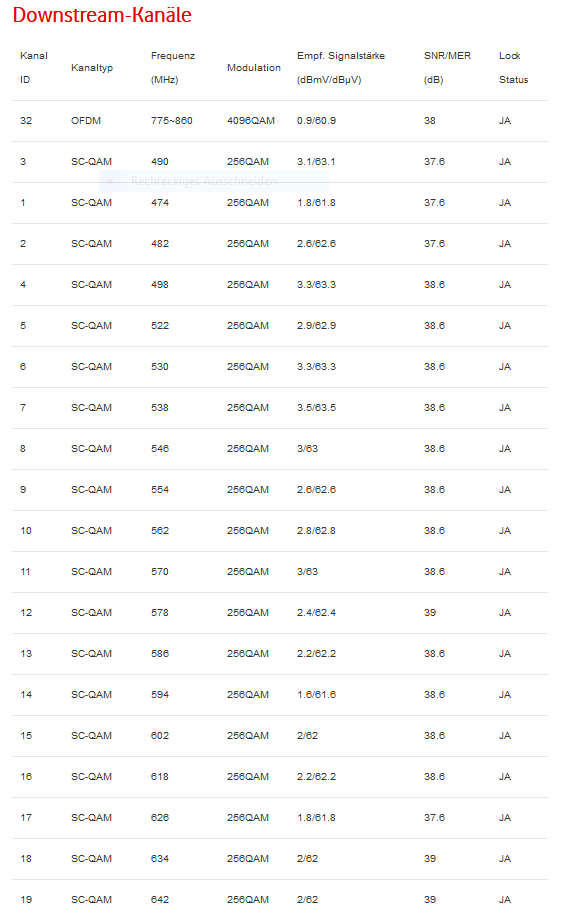 Das kannst Du Dir für die Zukunft merken: Was der Vodafone-Router diesbezüglich behauptet, ist reichlich irrelevant. Viel wichtiger sind da unter anderem die ausgelesenen und interpretierten Detailwerte!LPJ schrieb:weil der Vodafone-Router behauptet hat, er würde die volle Bandbreite abbekommen.