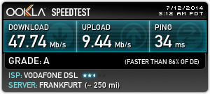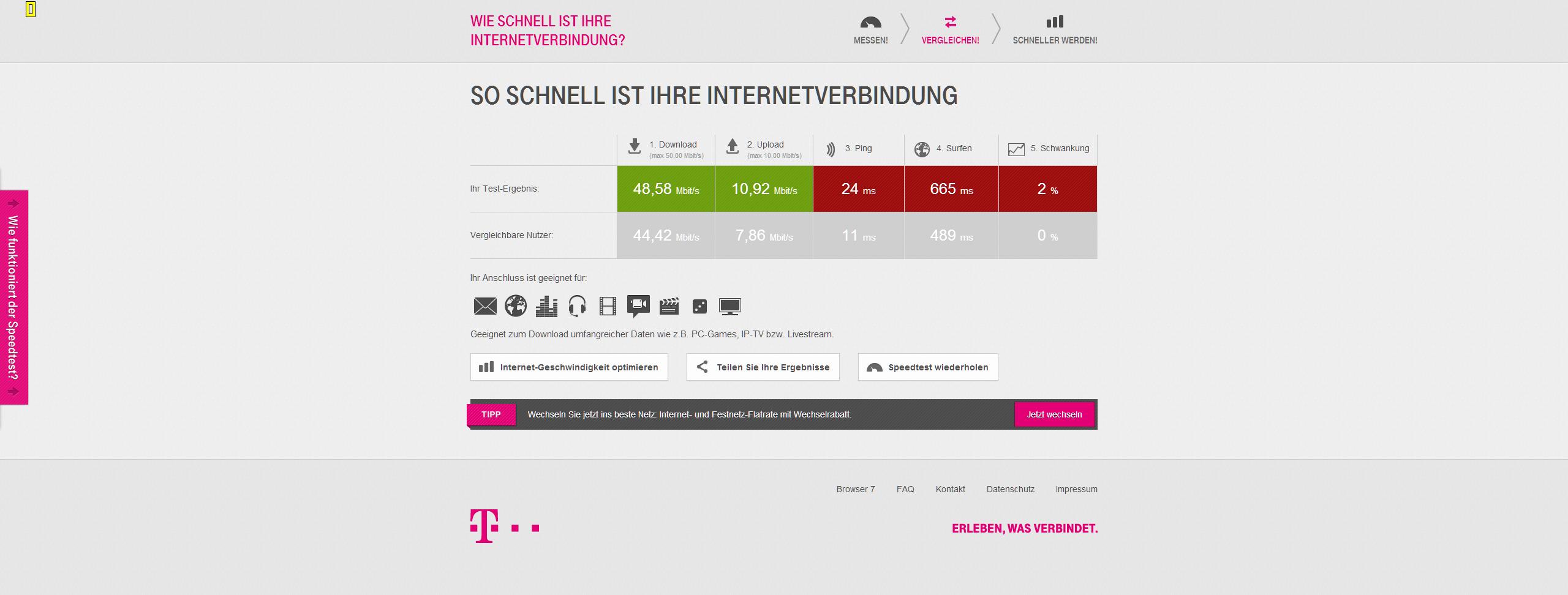 Ping ist zwar nicht so der Knaller,aber das stört mich nicht....hoffe zumindest der Up- und Downstream bleibt weiterhin so konstant.