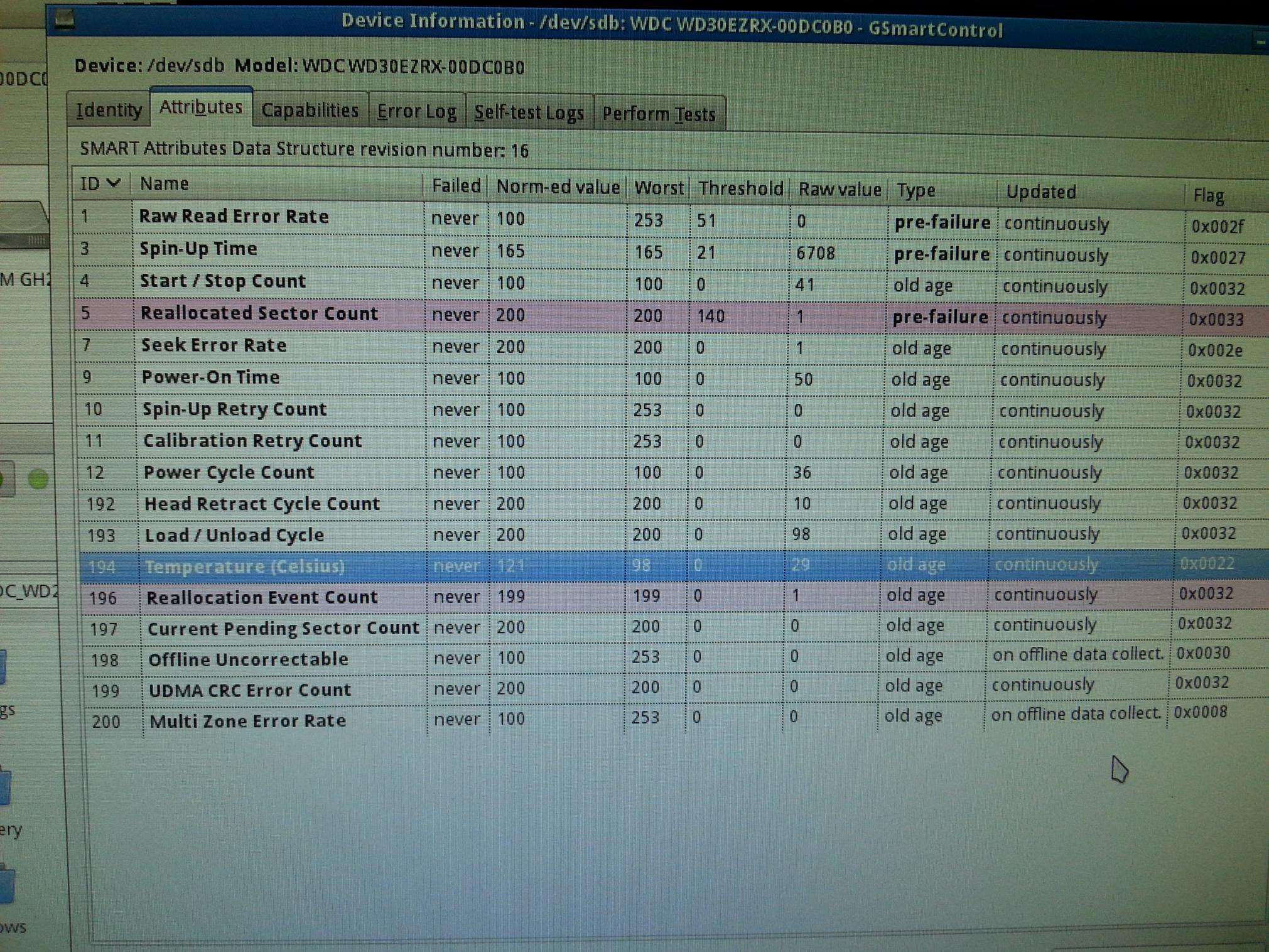 Brich den Selftest vorerst mal ab - eigentlich dürfte die HDD im Originalgehäuse keinen GPT haben: durch das interne Einbauen kann das jetzt aber anders sein. Mein Befehl liest die SMART Daten der HDD und gibt diese auf der Konsole aus - wenn die HDD bereits Fehler meldet, so muss man mit der weiteren Datenrettung vorsichtig vorgehen.