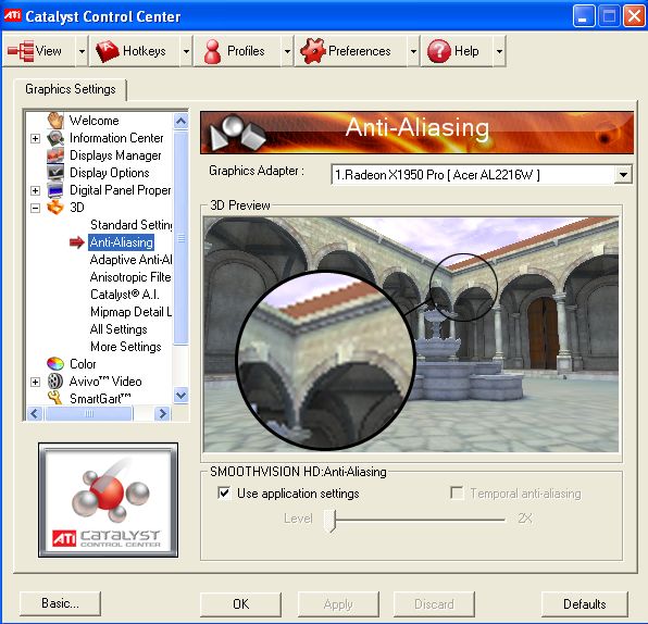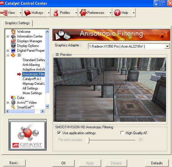 Die ATI-Tray-Tools sollten dir die Taktrate anzeigen können. Aber poste vielleicht erst einmal die Einstellungen des Control Centers und ob die Beschleunigung in dxdiag aktiviert ist.