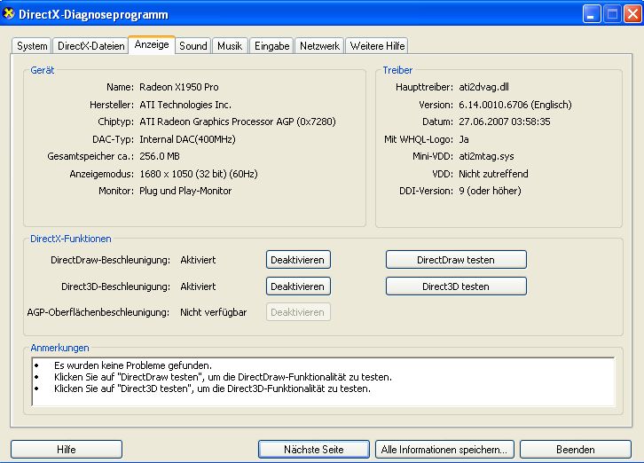 Wo genau der Fehler liegt, kann ich dir wirklich nicht sagen, denn scheinbar sind alle Geräte im Gerätemanager installiert und die VIA AGP-Brücke ist vorhanden. Du könntest im BIOS einmal die Standardeinstellungen laden und wie ich vorher schon mal geschrieben habe, die Chipsatztreiber von der Asus-Seite nehmen. Die sind meist uralt, vielleicht funktionierts mit denen.
