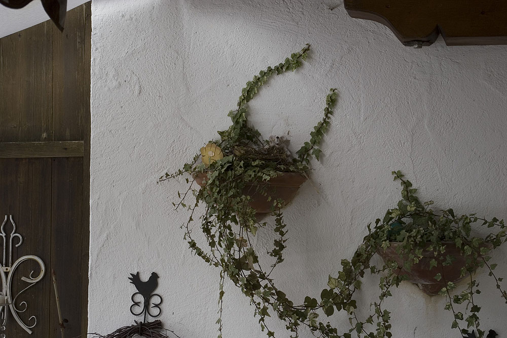 Und zwar direkt neben unserem Tisch/Stühlen, an der Wand (in einem Wand-Blumentopf)