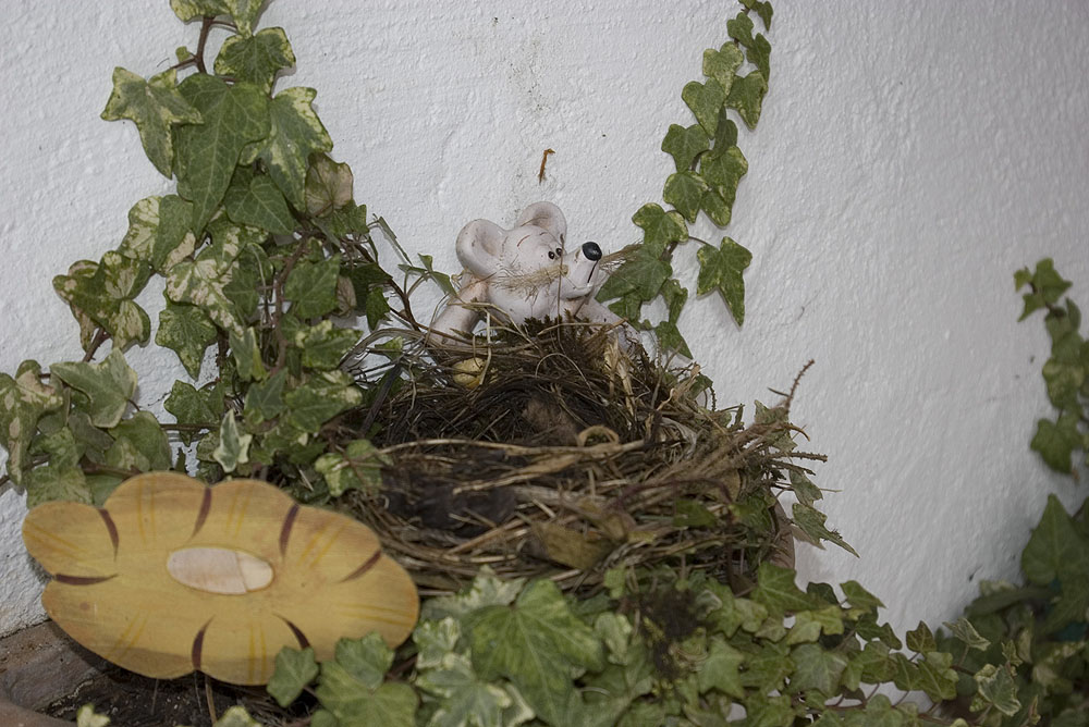 Eigentlich finde ich das recht süß wenn so ein Vogel sein Nest bei mir baut, aber ich vermute mal es könnte Schwierigkeiten geben wenn der Vogel die Eier brüten will, und im Frühjahr ist dann wieder mehr los auf der Terasse.