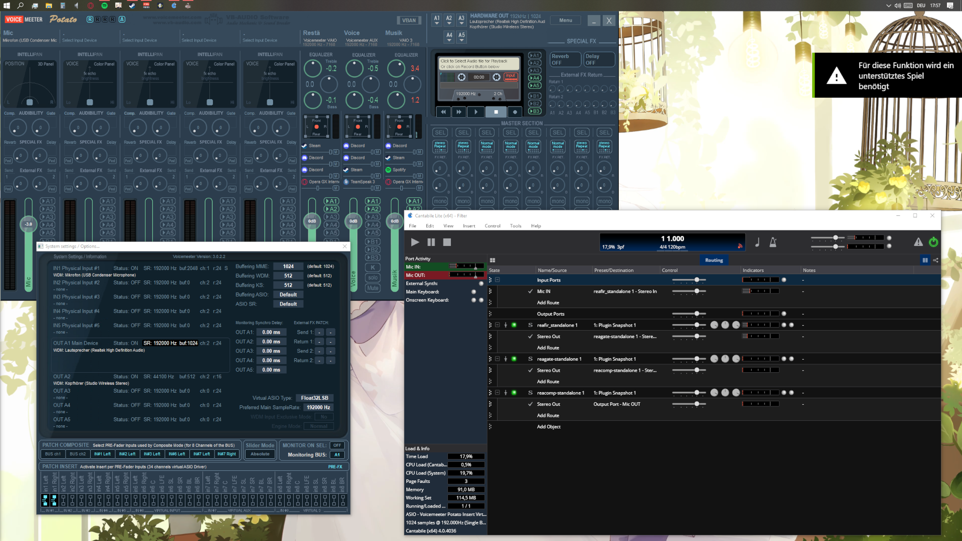 VB-Audio Cable, Voicemeter sowie Cantabile installieren.