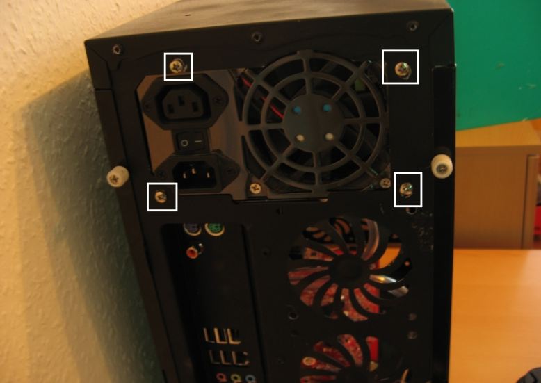 Kannst Du nicht schnelle ein Bild mit einer Handy-Kamera schießen und es hochladen? Irgendwie bringt mich das mit den Schrauben am NT jetzt noch mehr durcheinander. Mach bitte einfach mal ein Bild vom Rechner mit demontierter Seitenwand.
