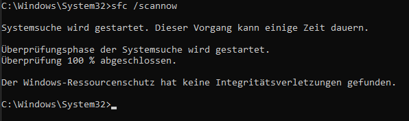 - wieder sfc /scannow gemacht - Keine Fehler mehr