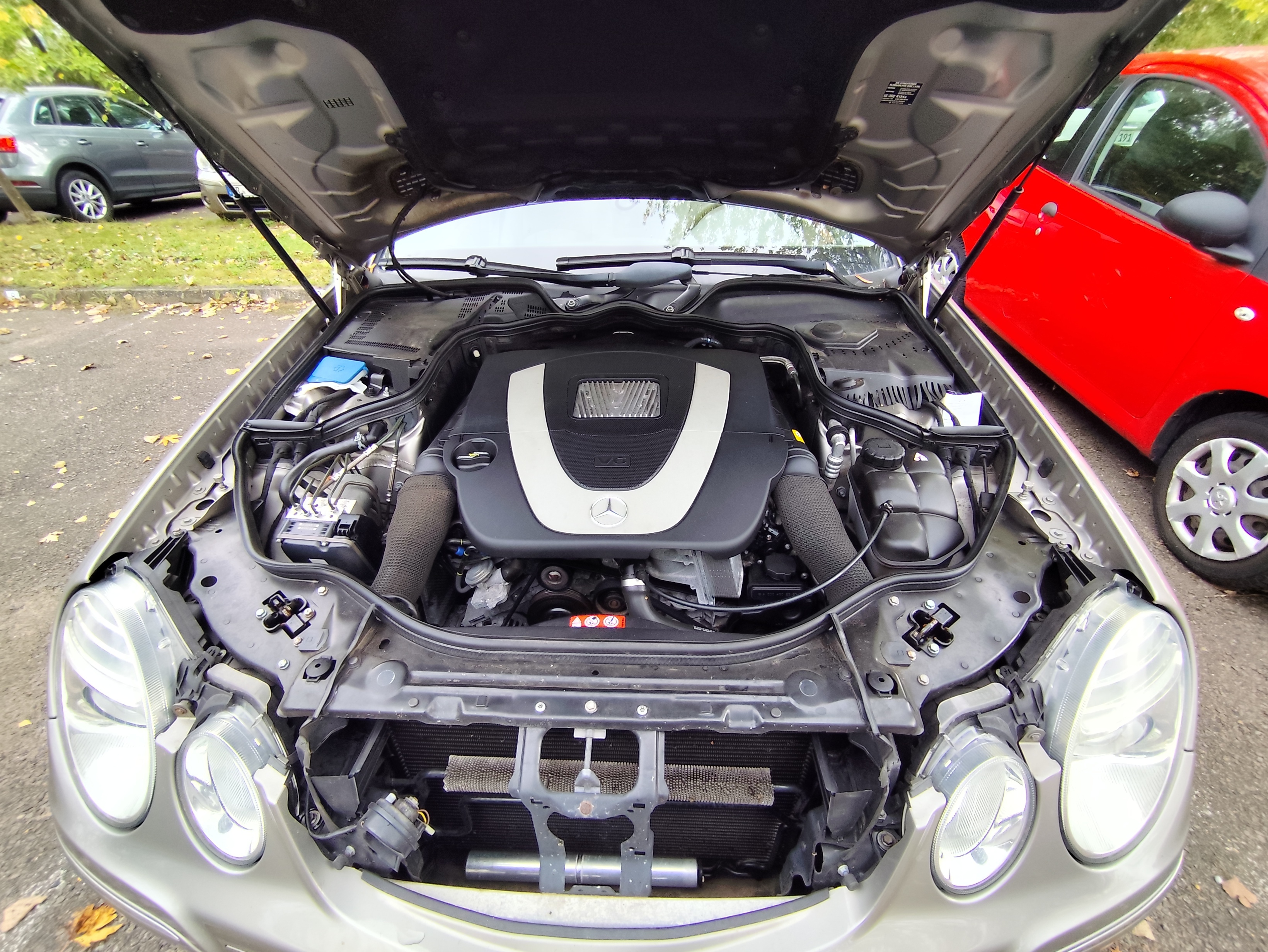 Das Auto ist die Mercedes E-Klasse W211 mit Bj. 2007. Zusammen mit der Farbe Cubanitsilbermetallic und gewöhnlichen 16“ Felgen ist der E-280 angenehmes Understatement.