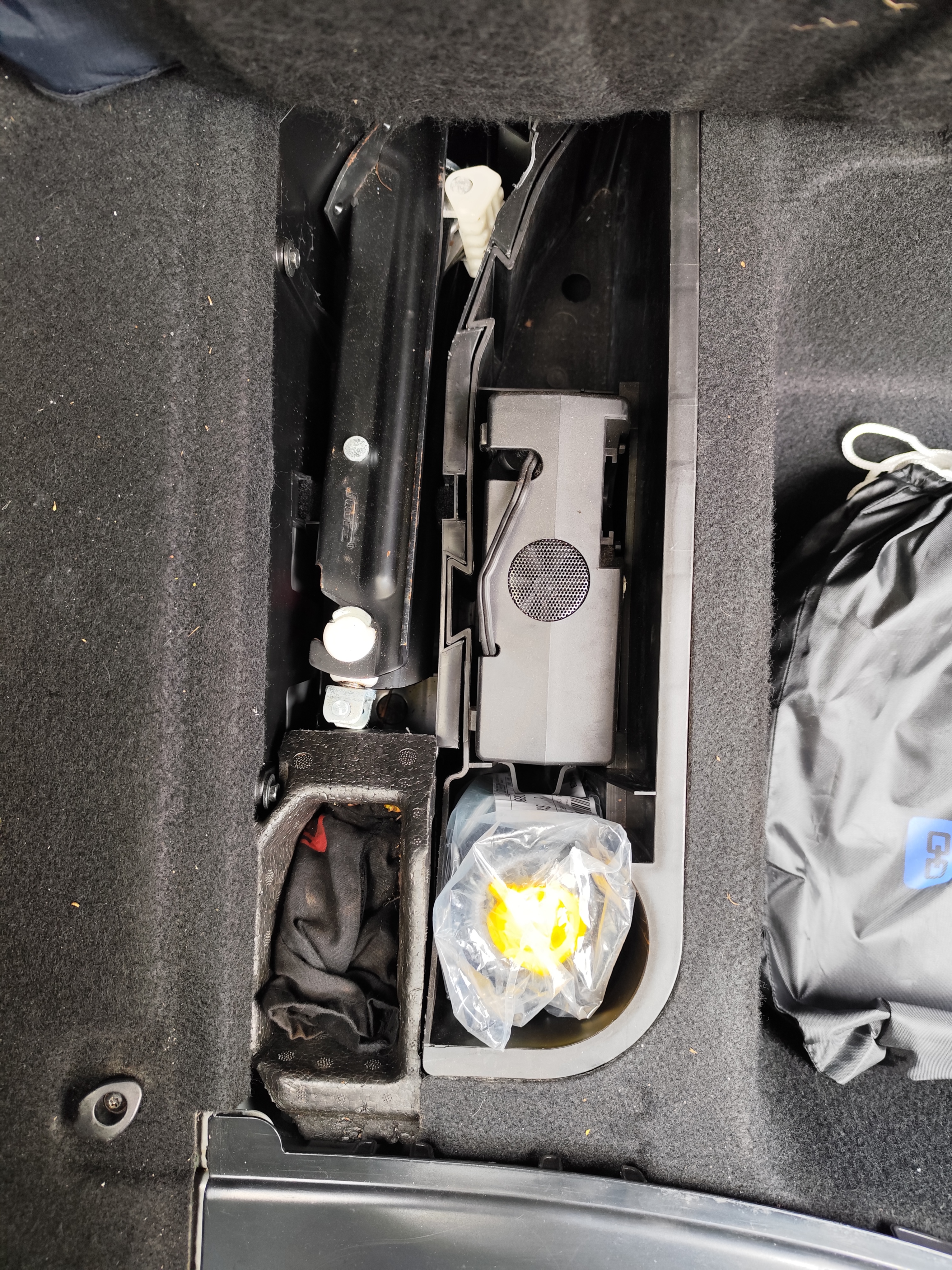Ich würde mir auch einen Halter für den Regenschirm wünschen, der beim E39 im Beifahrerfußraum nachgerüstet werden konnte, das vorhandene Netz nutze ich für einen 12V->230V Inverter.