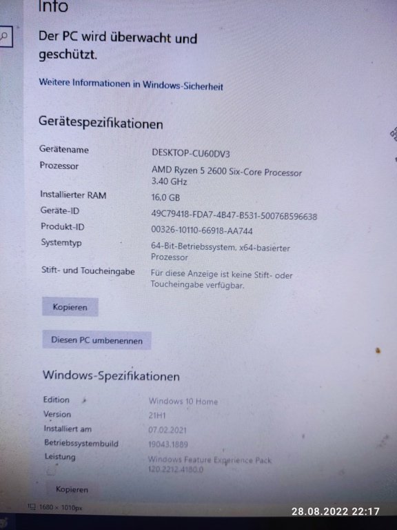 Das ist das Problem: Vor ca einem Jahr hatten wir einige Stromausfälle im Haus. NAch so einem fuhr der PC noch hoch und fror das Bild ein, der PC liess sich nicht mehr steuern. Deshalb neu gestartet, anschliessend kam kein BIld mehr. Diagnose: GRafikkarte defekt.