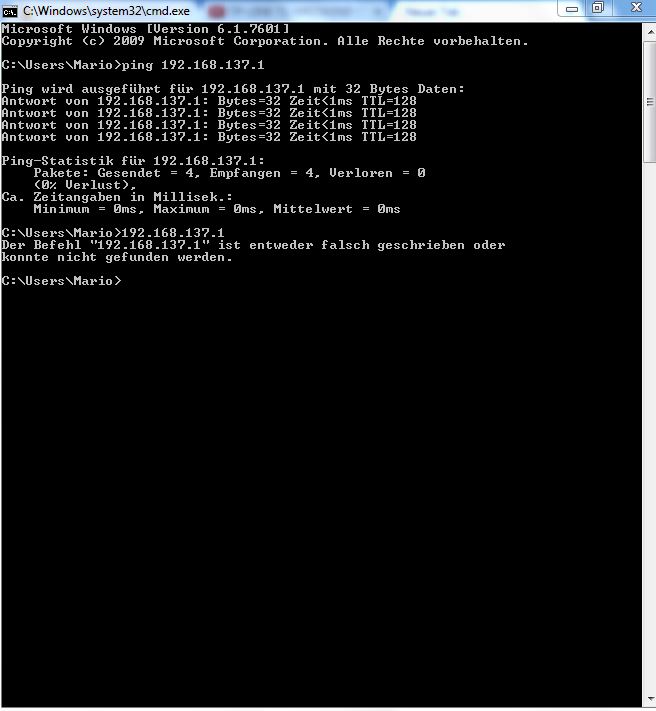 die 192.168.137.1 ist aber nicht die Adresse deines Routers, sondern die von deinem PC.