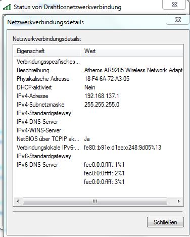 Ist in den Einstellungen deines WLAN-Adapters "Ip Adresse auf Automatisch beziehen" eingestellt?