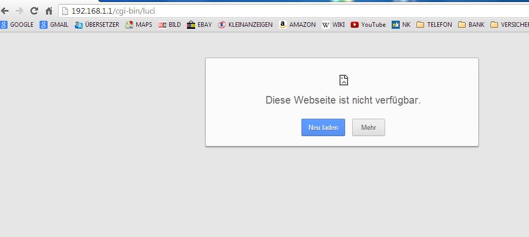 so, nachdem ich pc neugestartet habe und router kurz vom strom, im browser standard ip vom router eingegeben, zeigte er mir paar sekunden die luci startseite und zwar diese: