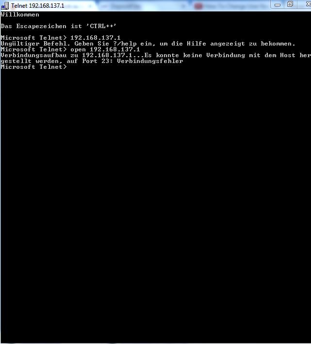ja sehr merkwürdig, im telnet sah es so aus. mach ich das richtig mit telnet? einfach nur die ip eintippen?