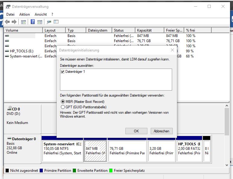Hier mal die aktuelle Anzeige in der WIN 10 Datenträgerverwaltung