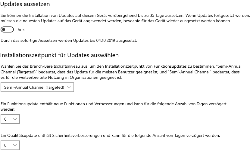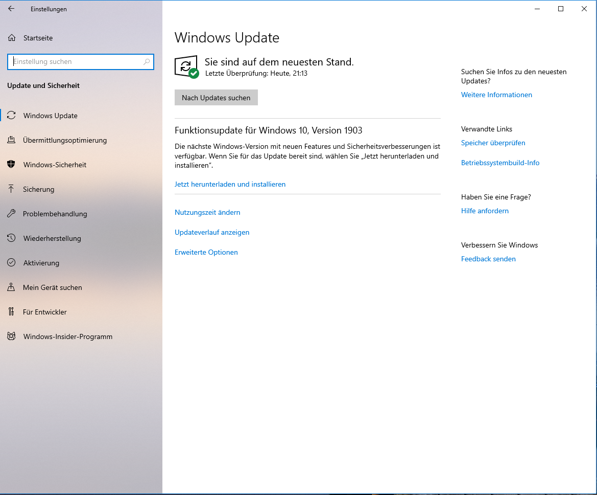 und was noch wichtiger ist. wie kommst du drauf das was zerschossen ist ? was soll zerschossen sein ? kann ich mir nicht vorstellen. die sicherheitsupdates lädt windows mir nach wie vor automatisch runter ohne probleme und ich hab auch rein garnichts geändert/getweaked am update service etc. der update service lief immer ohne jegliche probleme bis ich vor paar tagen die meldung bekam das wichtige updates fehlen (damit ist sicherlich 1903 gemeint) sowohl als trayicon als auch wie auf dem screen zu sehen im update menü. sehr merkwürdig das ganze..