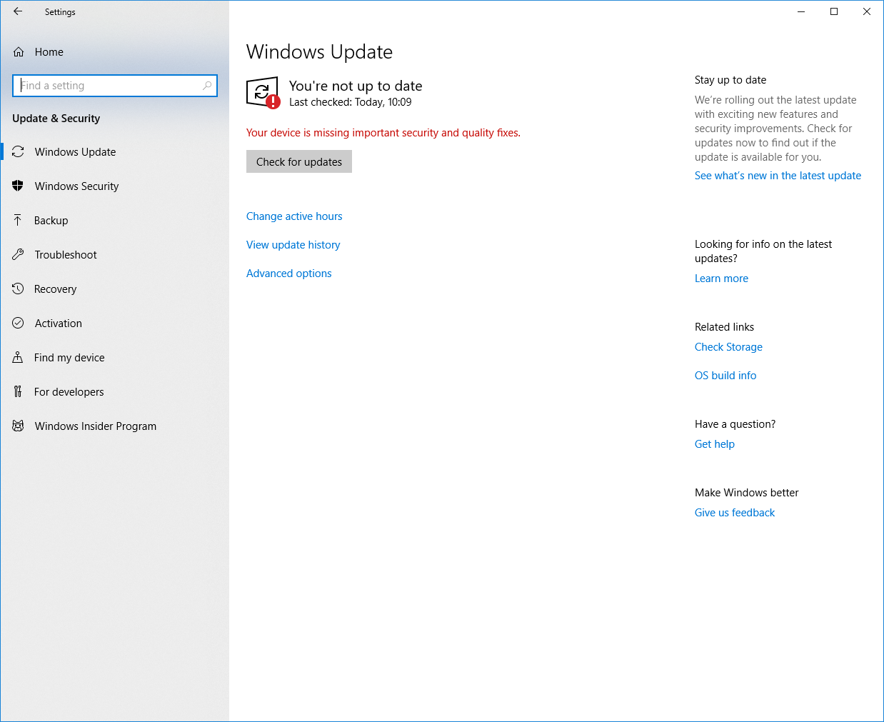 schau(t) mal. wenn ich auf das trayicon doppelklicke verweist er mich zum gleichen update menü. jedoch mit einem unterschied. die meldung unter "check for updates". die besagt eindeutig das die windows featureversion gemeint ist. folglich hatte ich mit meiner vermutung recht das sich die meldung und auch der rotgeschriebene satz auf das featureupdate bezieht. nun frage ich mich natürlich wie das weitergeht.