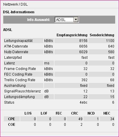 Router ist der Speedport 501V. Ich weiss, die ausgelesenen Werte müssen nicht stimmen, aber man hat zumindest ein Anhaltspunkt.