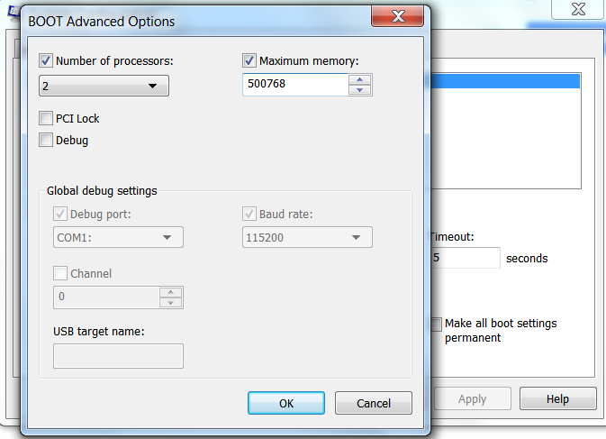 "oder ein falscher Eintrag im MSCONFIG.exe>Boot>Advanced Options (Erweiterte Optionen)> hacken raus bei Number of Processors und Maximum Memory."