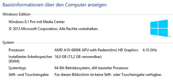Zunächst einmal meine Systemdaten:
