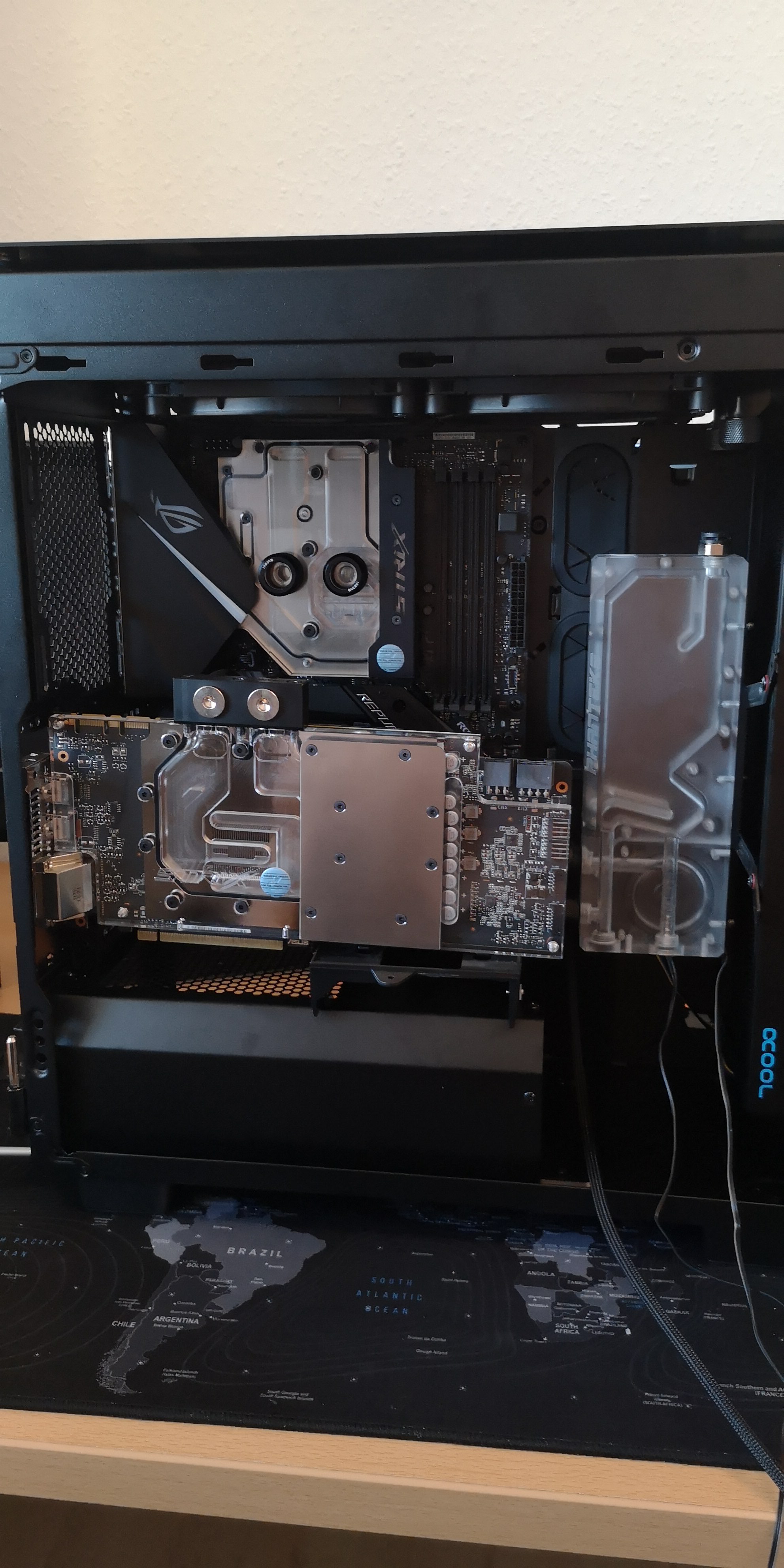 Am Anfang war die Pumpe und generell der ganze Kreislauf richtig laut, wurde aber mit dem Entlüften wesentlich leiser, am Ende habe ich die Pumpe fast gar nicht mehr gehört, dabei stand das Case noch offen. Bin erstmal begeistert.