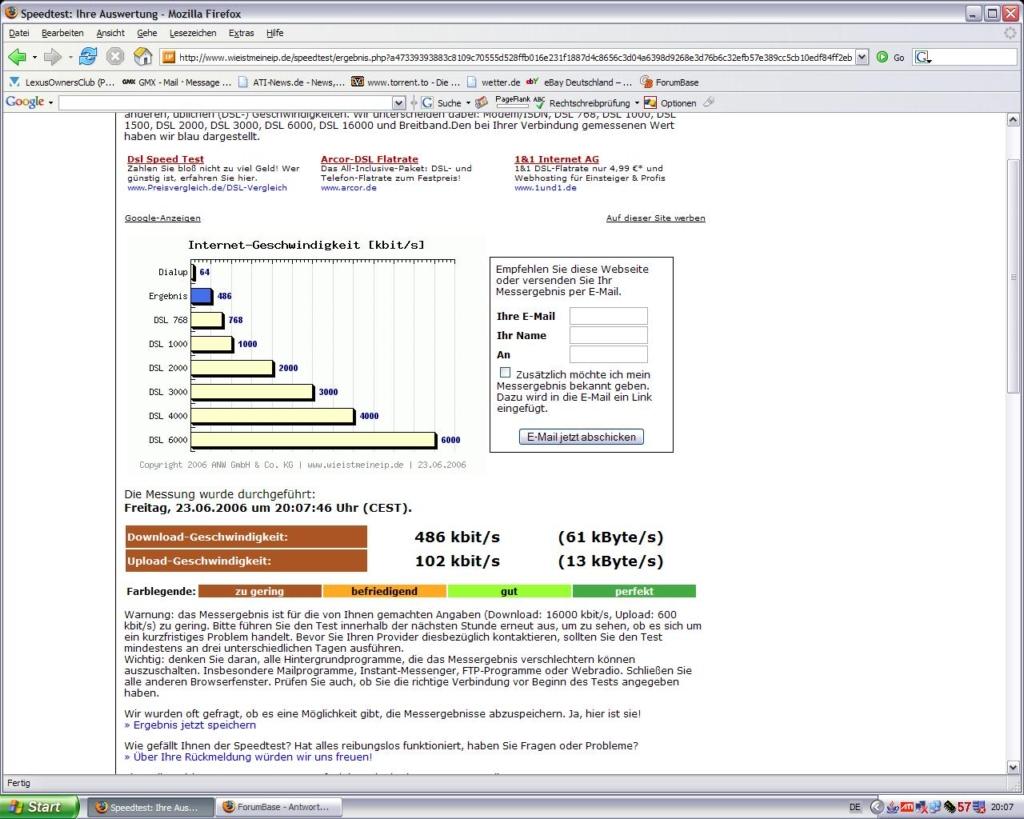 ich habe eine Bandbreitenänderung von 2000 auf 16000 durchgeführt heute soll es aktiviert werden aber ich habe jetzt wo es noch nicht aktiv ist folg. Geschwindigkeit: